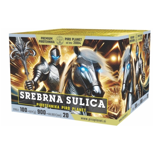 Ognjemetna baterija Srebrna sulica je 100 strelna mega ognjemetna baterija, katere efekt je: