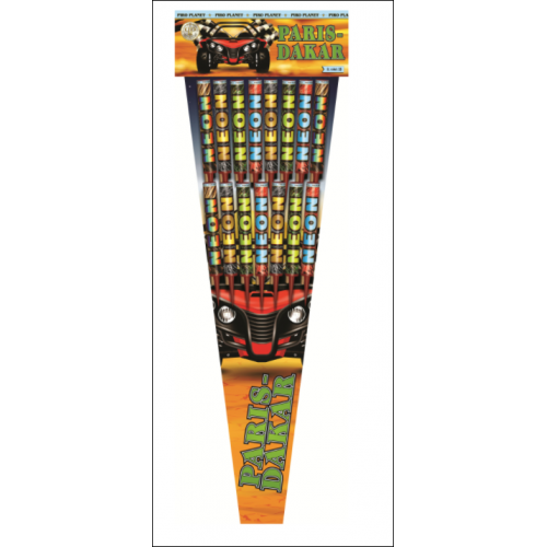 Raketni komplet Paris Dakar je 15 delni raketni komplet, velikosti XL, ki vsebuje cilindrične rakete Neon v različnih efektih. Rakete dosežejo višino okoli 55 m.